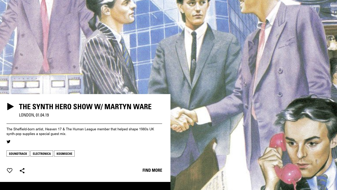 RADIOSHOW radioshow : NTS - THE SYNTH HERO SHOW with MARTYN WARE (HEAVEN 17) By Planeta Pop at : Monday, August 31, 2020 0 Comments LISTEN HERE.